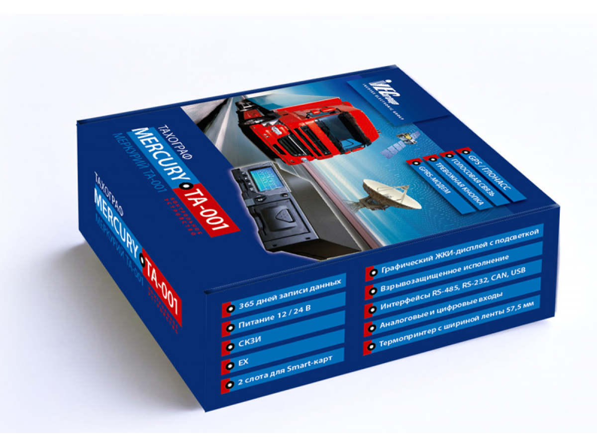 Тахограф «Меркурий ТА-001» обеспечивает непрерывную, некорректируемую регистрацию информации о скорости и маршруте движения транспортных средств и предназначен для установки на колёсные транспортные средства категории М2, М3, N2 и N3 (далее – ТС). Тахограф сертифицирован на соответствие требованиям Технического регламента о безопасности колесных транспортных средств.